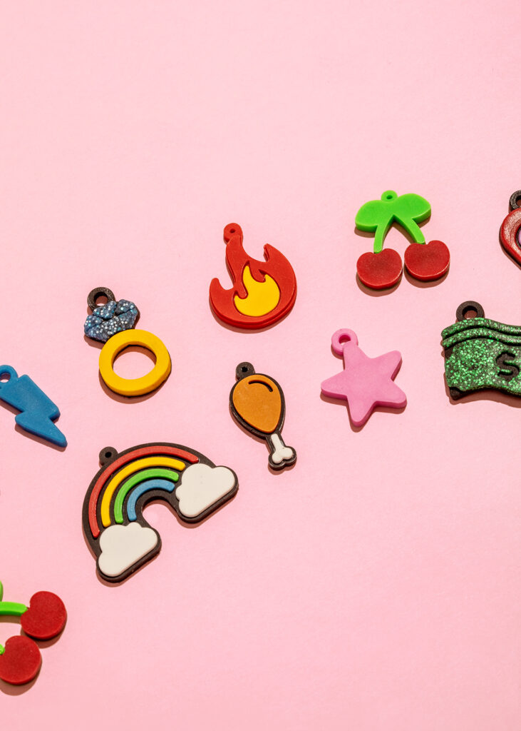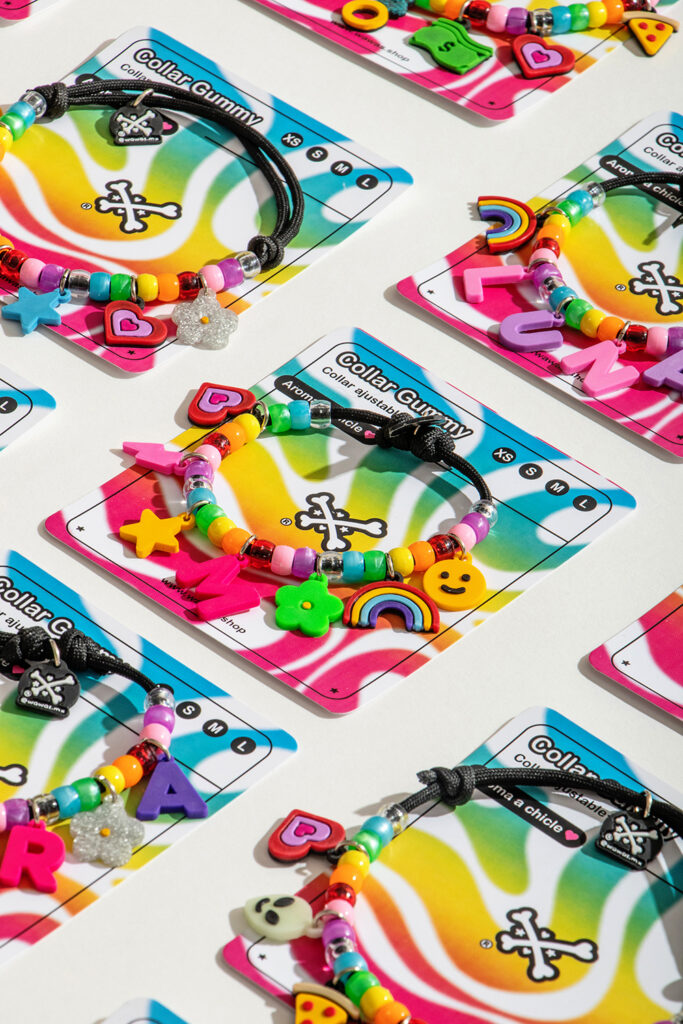 Collar con diseño gummy y charms decorativos incluidos. Disponible en diferentes tallas para tu mascota.
